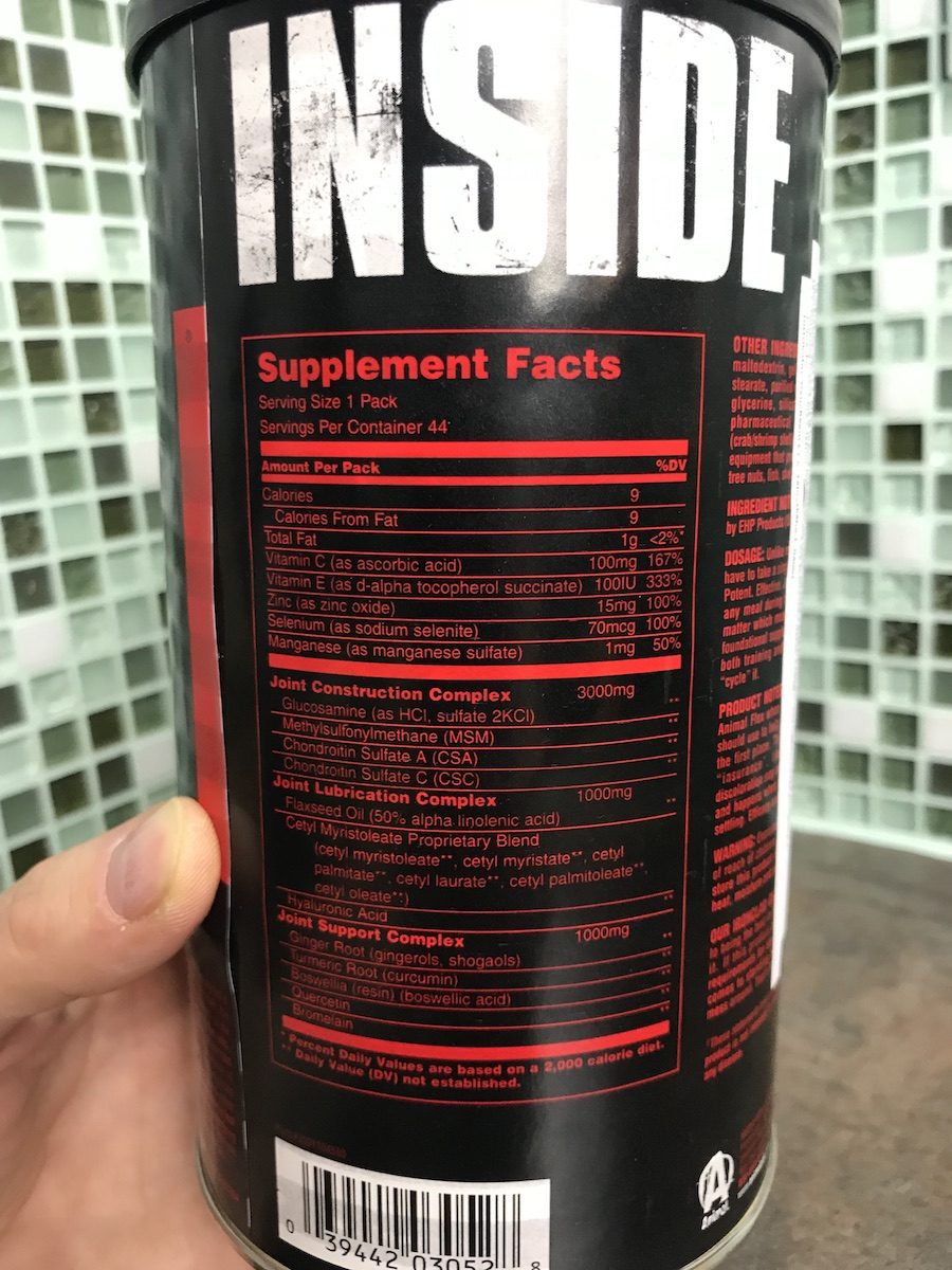 Animal Flex je momentálně nejprodávanější kloubní výživa (a to nejen pro sportovce) u nás. Obsahuje podpůrné látky jako glukosamin, MSM a chondroitin, ale i vitamín C, E a také zinek, selen a mangan. Přičemž například vitamin C přispívá k normální tvorbě kolagenu (podstatný pro správnou funkci kostí a chrupavek). Zinek zase udržuje zdravé a pevné kosti… Balení Animal Flex obsahuje 44 balíčků s přesným dávkováním na každý den.